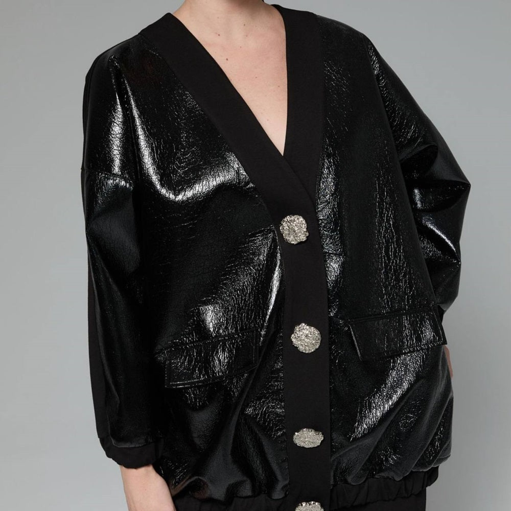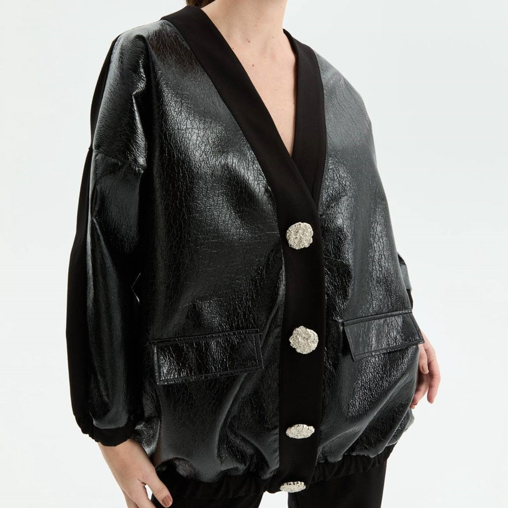 طقم قطعتين ( جاكيت جلد مع بنطلون قطن )