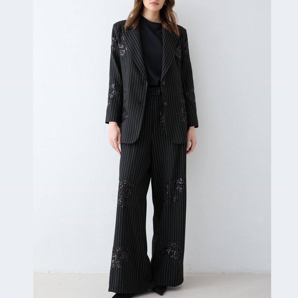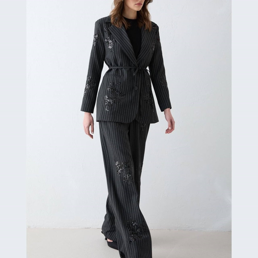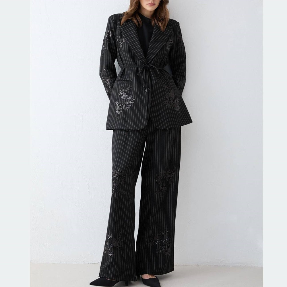 Embroidered Striped Two Piece Set