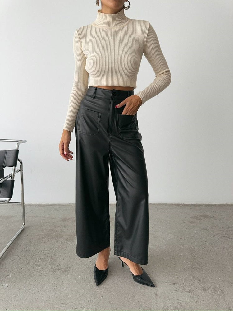 Wide Leg Leather Pants
